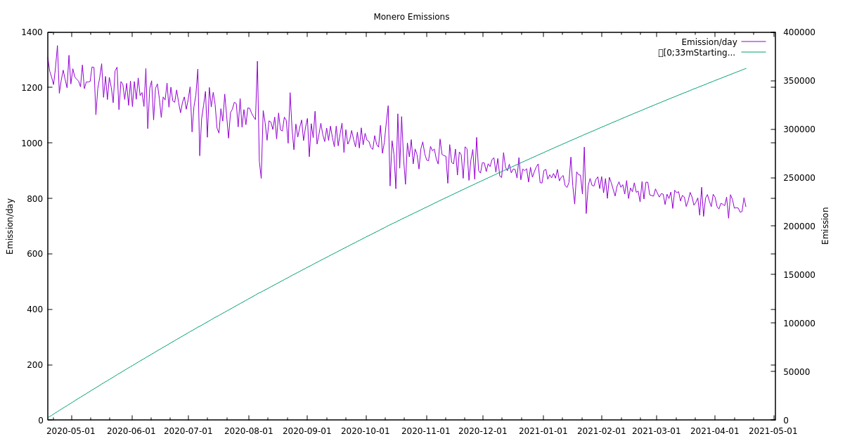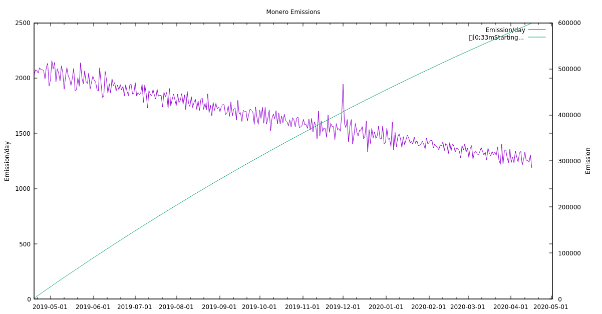 - Monero's emission per day dropped from ~1,200XMR to ~750XMR over the course of the year.