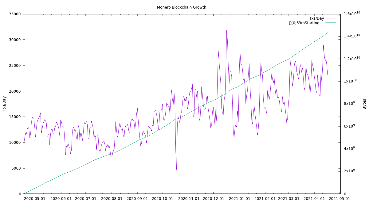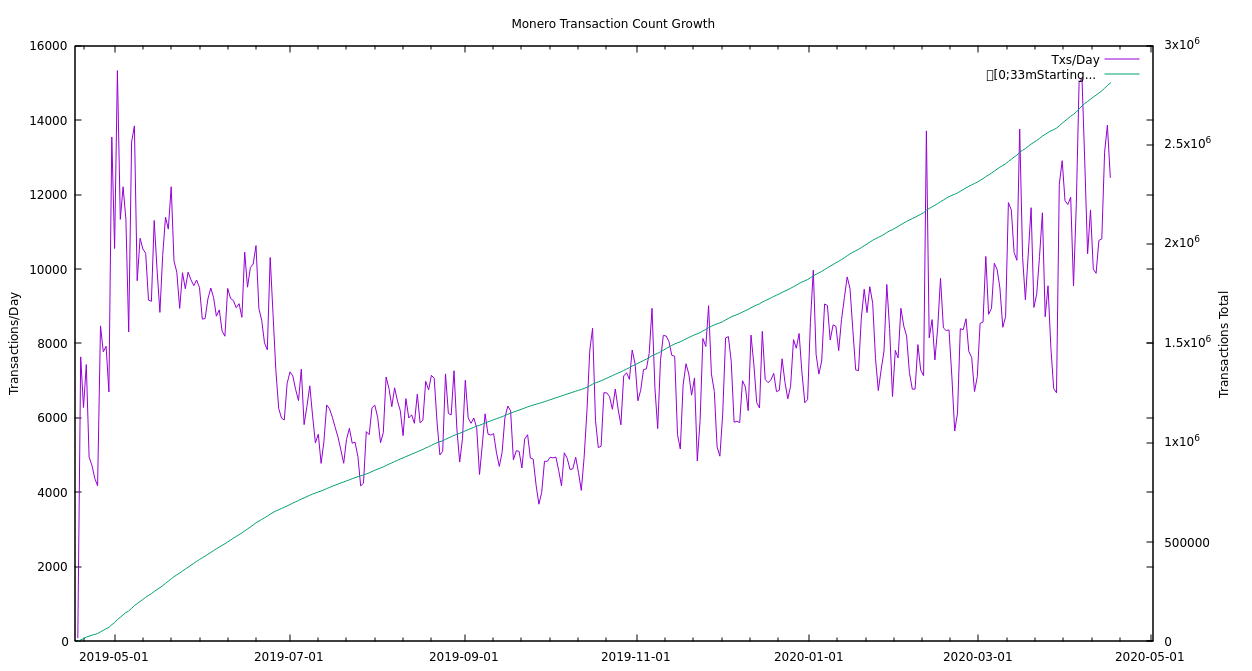 - Monero transactions grew from ~7,000tx per day to ~10,000tx per day